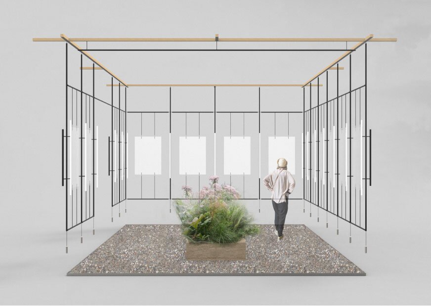 The installation itself will continue the narrative of Ecotopia. A framework of wall-mounted screens will display illustrations of these visions, and a floor of bark chippings and rammed earth will support plants that reduce pollution. Ferns and grasses can play a role in the transition to a more sustainable future as they provide food, building materials and fuel. As a whole, the installation will create a small-scale Ecotopia for people to experience. The space will provide a restful contrast to busy, chaotic urban life: a place for quiet contemplation.